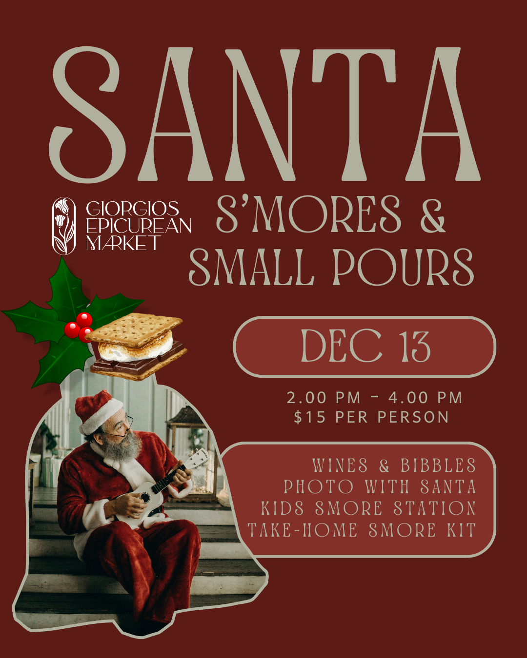 This is the perfect family-friendly holiday outing—a cozy afternoon where kids can meet Santa, families can take festive photos, and grown-ups can enjoy seasonal drinks from the bar while the little ones enjoy their treats.
